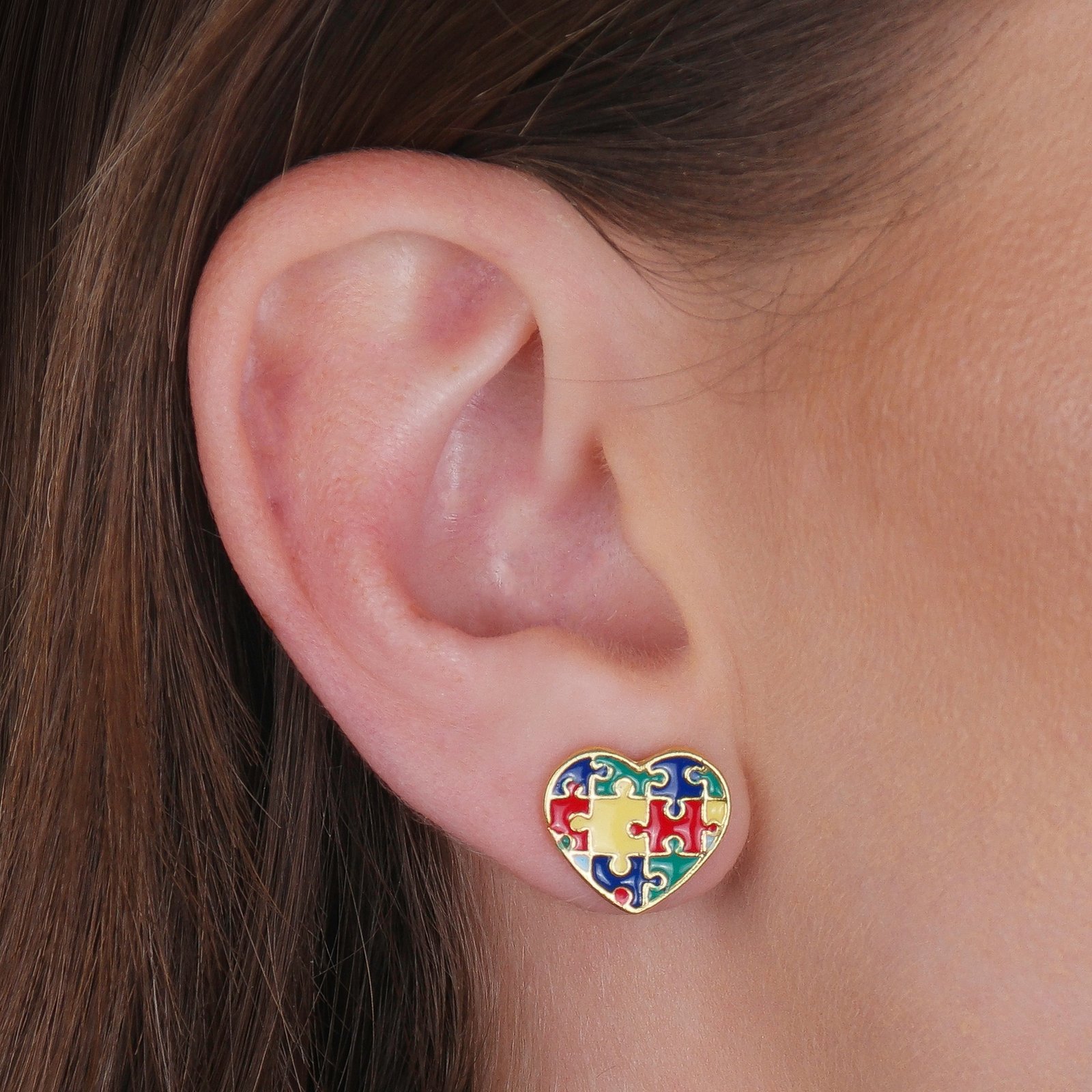 Brinco Dourado Autismo Formato Coração